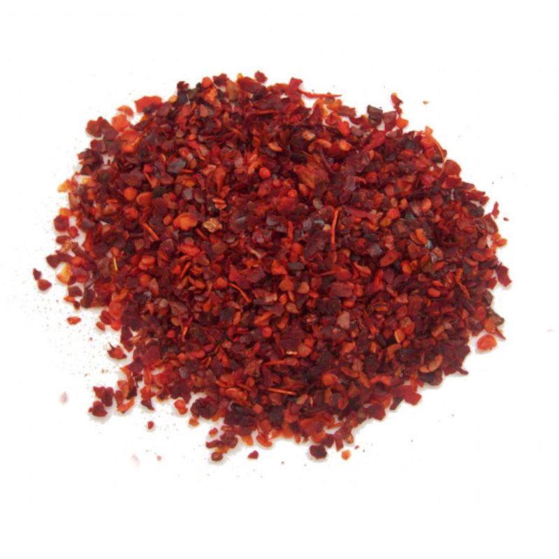 Su color rojo proviene del pigmento natural del pimiento, y su textura en hojilla la hace perfecta para emplearla fácilmente en diferentes elaboraciones sin necesidad de remojo previo.